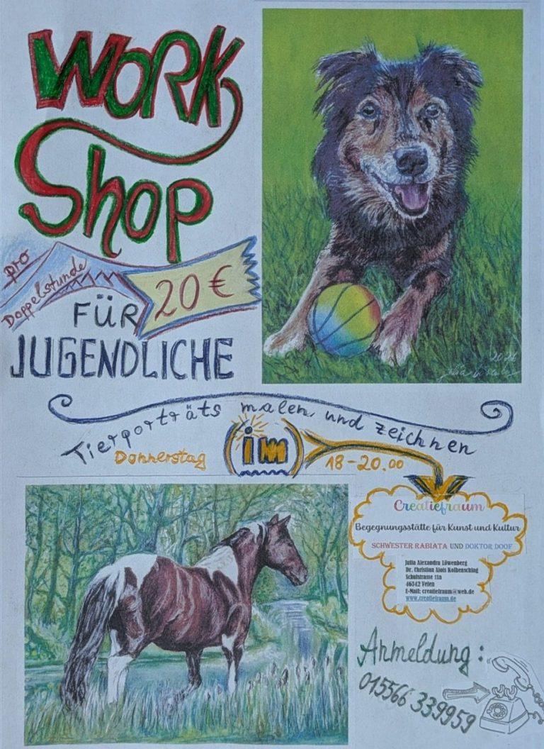 Ab sofort bieten wir Malkurse für Kinder ab dem Schulalter an. Termine nach Vereinbarung.